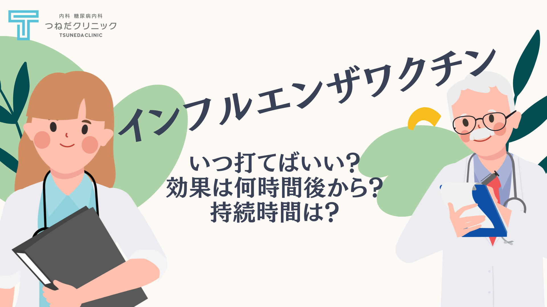 インフルエンザが流行する季節が近づいてきました。ワクチンは“冬の備え”です。「インフルエンザワクチンはいつ打てばいいの?」「効果はワクチン接種後いつ頃から出るの?」「どれくらい持続するの?」──このような疑問を持つ方は少なくありません。この記事では、糖尿病内科を専門とする医師の立場から、最新のエビデンスに基づいてわかりやすく解説します。