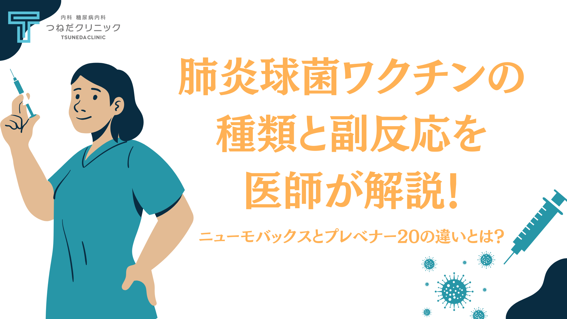 肺炎球菌ワクチンにはニューモバックスNP®(PPSV23)とプレベナー20®(PCV20)があり、注射方法や免疫の仕組みに違いがあります。定期接種の種類は変更予定であり、費用や詳細は自治体の通知を確認することが重要です。副反応は比較的軽度であることが多く、重症化予防の観点から接種の意義は大きいとされています。